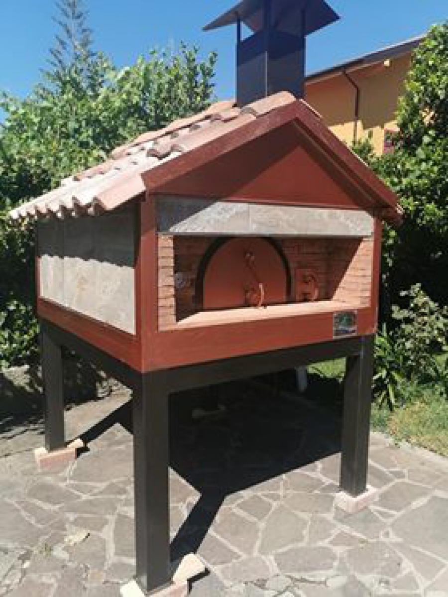Costruito interamente con mattoni refrattari, che permette un basso consumo di legna anche all'esterno se isolato da agenti atmosferici resta caldo per diversi giorni.